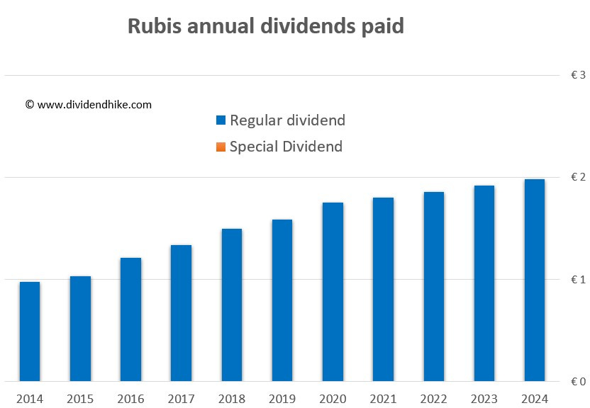 Little known Rubis is actually one of just a few real Dividend Aristocrats in Europa with more than 25 consecutive years of increased dividends. Rubis boasts a super high dividend yield with annual dividend growth.