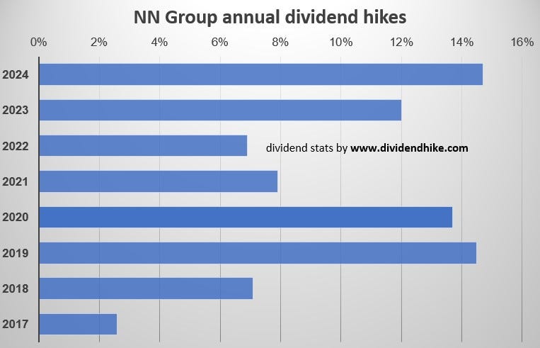 Insurer NN Group combines a high dividend yield with strong annual dividend growth.