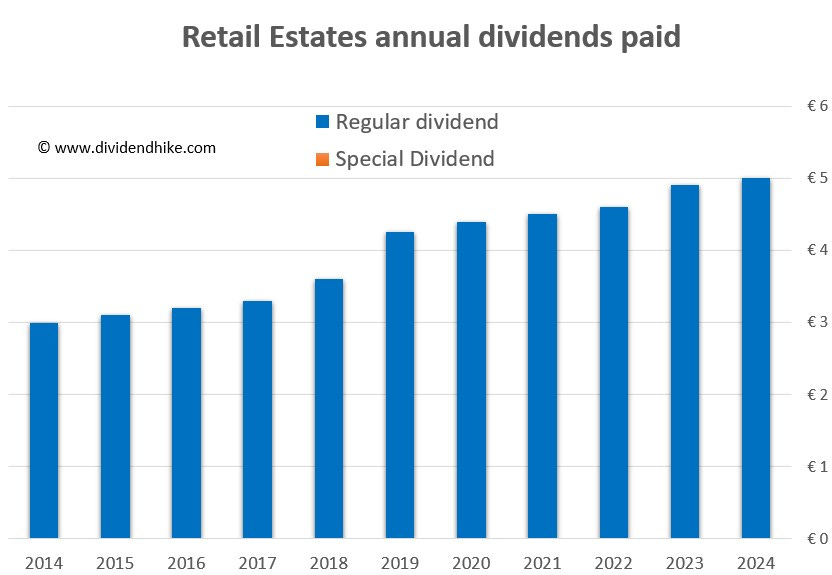 Also unknown to many investors is real estate company Retail Estates from Belgium. The company has a strong dividend track record with decades of annual increases.