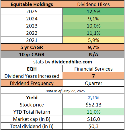 The company that we are talking about is Equitable Holdings EQH 0.00%↑ , one of the 7 stocks we added recently to the dividend hike portfolio. The good thing is that we expected a double digit dividend hike in 2025, that was delivered just a couple of days ago.