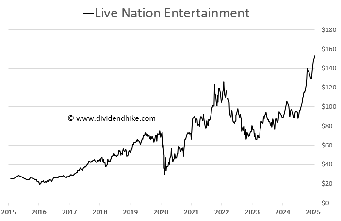 With the stock trading at an all time high and a growing free cash flow, expected to rise from $1.07 billion in 2024 to over $2 billion by 2027, a potential $2.00 per share annual dividend would cost LYV an estimated $465 million annually, leaving enough room for future increases.