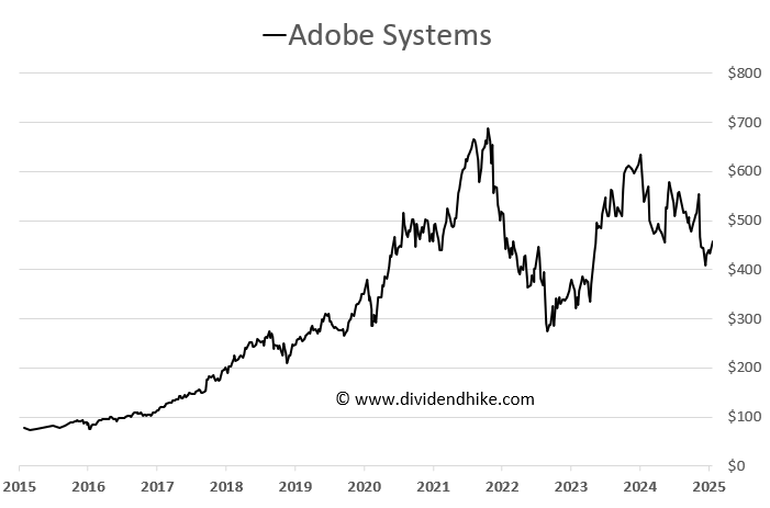 Adobe has a debt-free balance sheet with $2.2 billion in cash at the end of 2024 (fiscal year runs until November); this will increase to over $10 billion in the coming years, meaning a small and growing dividend can easily be financed.