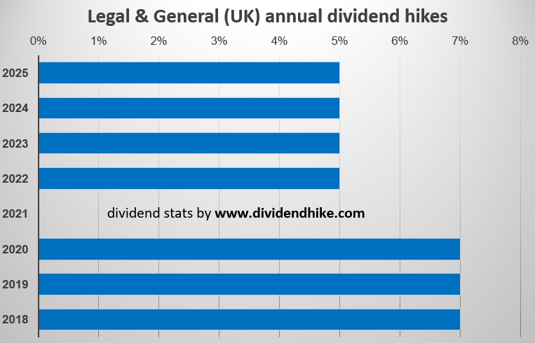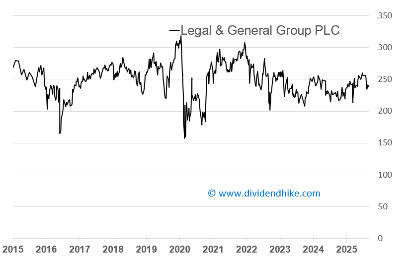 What immediately stands out is the combination of a very high dividend yield and a historically stable growth profile. Over the long term, L&G has increased its dividend at an average rate of around 5% per year. A notable footnote: during the COVID period in 2020, the dividend was not increased, while in the years before that, dividend growth averaged closer to 7% annually.