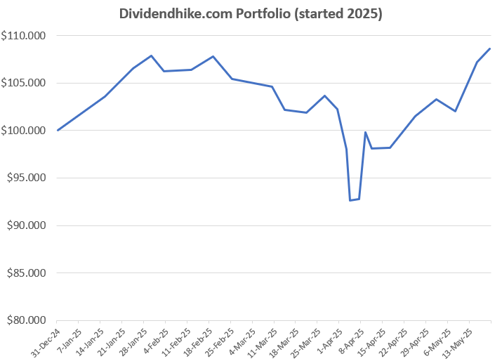 Even our own Dividend Heroes are trailing behind in 2025, with a year-to-date gain of 6.4% as of May 19—still respectable, but not quite on par with the Dividend Hike Portfolio.