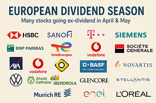 Europe's Dividend Season Kicks Off: More than 150 dividends paid in next two weeks. Check the full ex-dividend calendar for Europe including dividend…